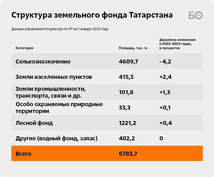 В Набережных Челнах нет сельхозземель в черте города, сообщил «БИЗНЕС Online» мэр Наиль Магдеев. Нулевая площадь, по данным управления Росреестра по Татарстану, и в других городах республики.