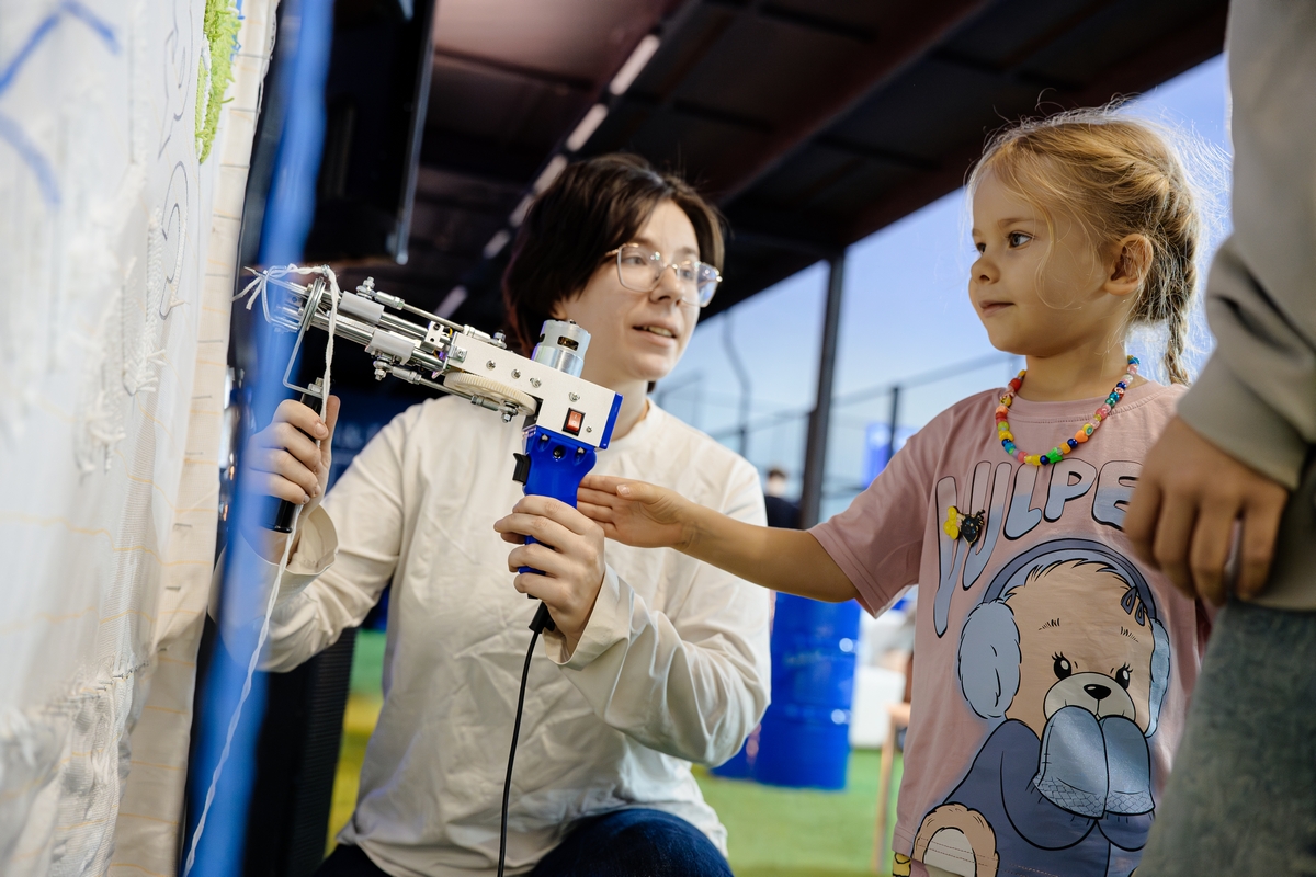 Помимо спортивной программы, участники могли проявить себя в творчестве, например, выткать фирменный ковер. А в перерывах между играми — выпить смузи для быстрой подзарядки.