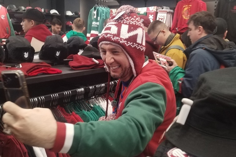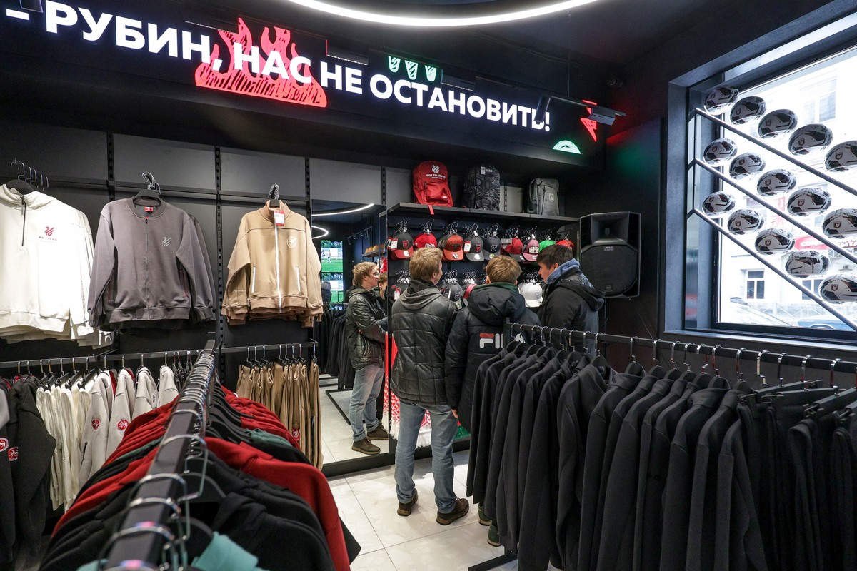 В магазине представлен традиционный ассортимент фан-шопа «Рубина» — здесь не только спортивная экипировка или игровые джерси, но и множество повседневных вещей для мужчин, женщин и детей.