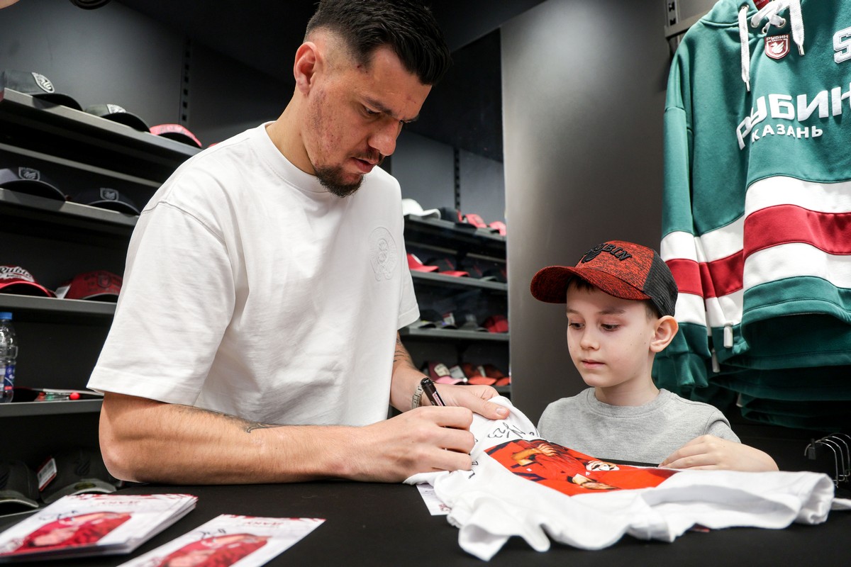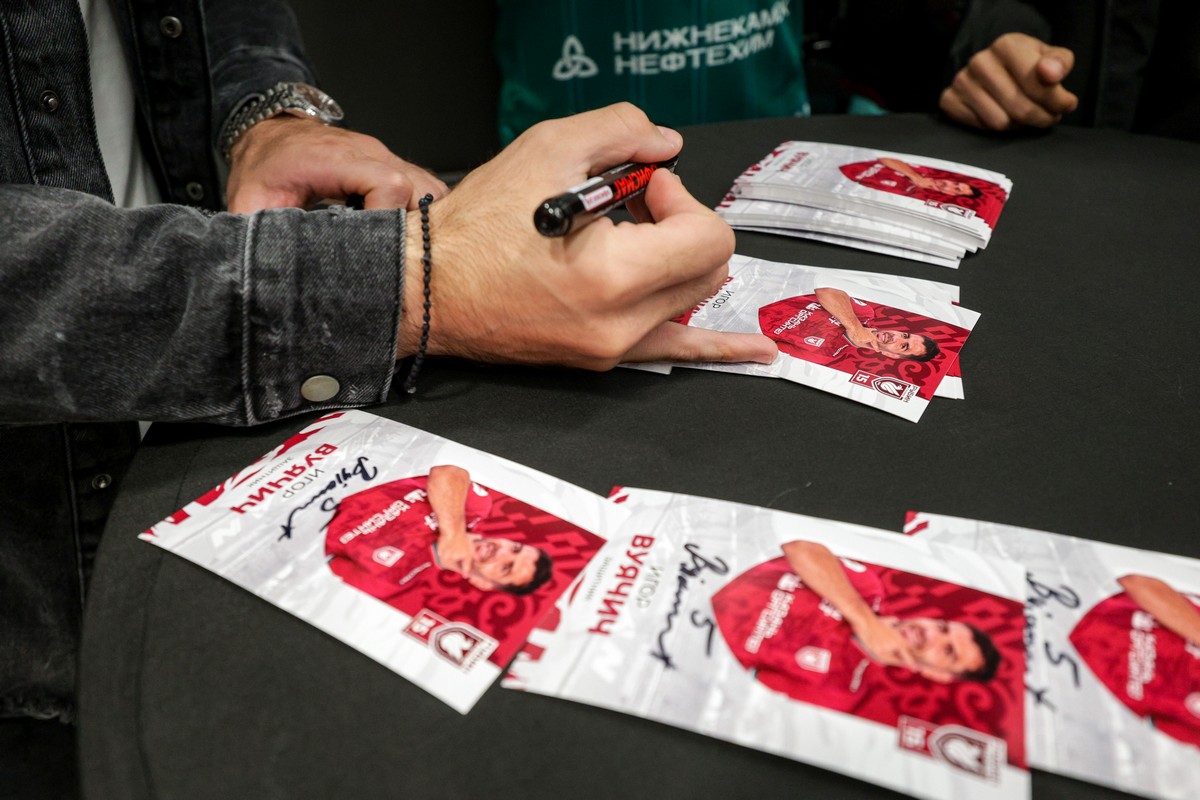 Те, кто пришел за автографами, организовали отдельную очередь. Остальные свободно проходили к кассам. Гостей развлекал ведущий: «Мы здесь собрались после вчерашней встречи на „Ак Барс Арене“, где „Рубин“ сыграл дружественную ничью с „Акроном“».