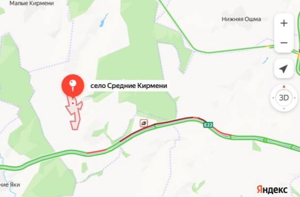 Так, пробка начинается недалеко от поселка фермы № 2 совхоза Мамадышский и заканчивается у села Средние Кирмени. Как отмечают на карте водители, на месте произошло ДТП, перекрывшее правую и среднюю полосу движения.